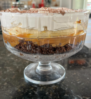 Com o tempo, essa receita ganhou variações no mundo todo, e aqui no Brasil não foi diferente. Adicionamos o nosso toque especial: o doce de leite no lugar do toffee, e nesta versão da vovó, usamos bolacha de leite com sabor chocolate e um toque de canela para enriquecer o sabor. E para ficar ainda mais prática e charmosa, servimos na taça!