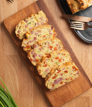 - Em uma taça grande, misture a farinha com o fermento, temperando com uma pitada de sal e pimenta-do-reino. Adicione os cubos de bacon, chouriço e presunto, misturando tudo muito bem para que os enchidos fiquem envolvidos na farinha. Isso ajuda a evitar que afundem na massa.