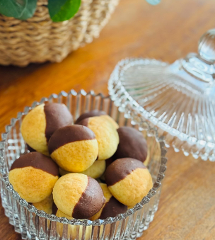 Essa receita nasceu lá no interior, quando as vovós aproveitavam o que havia no pomar e nas despensas para criar quitutes que alimentavam o corpo e a alma. O polvilho, a farinha, o ovo fresco do quintal, o queijo curado da roça e a laranja colhida no pé se transformavam em bolachinhas macias por dentro e ligeiramente crocantes por fora. O toque do chocolate veio depois, para agradar os netos — uma adaptação carinhosa, como toda boa receita deve ser.