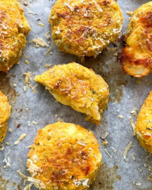 Nesta receita, unimos raízes cozidas e amassadas com frango desfiado, sementes e castanhas que conferem textura e nutrientes extras. Recheamos com queijo minas para aquele toque cremoso no centro, e finalizamos com uma leve crostinha de parmesão. Uma verdadeira preciosidade para servir como lanche, marmita ou acompanhamento.