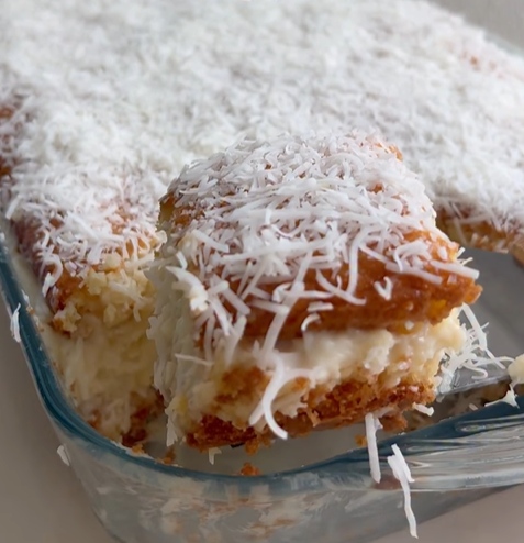 Finalize o Bolo de Coco Super Molhadinho com coco ralado por cima.