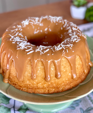 É um bolo úmido, com textura macia e aquele sabor marcante do coco e da tapioca, finalizado com uma calda cremosa de doce de leite que desmancha na boca. Uma verdadeira preciosidade da confeitaria caseira, que carrega consigo tradições nordestinas e o carinho das cozinhas de vó.