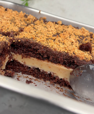 Essa versão mais cremosa, com chocolate e café, traz sofisticação ao sabor rústico da paçoca e é perfeita para quem quer um bolo gelado com cara de festa, mas fácil de fazer em casa.