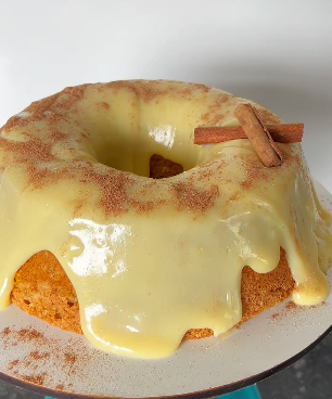 - Espalhe essa cobertura ainda quente sobre o bolo frio e finalize com canela em pó.