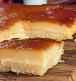 O Boludim – Queijadinha é uma sobremesa irresistível que combina o melhor dos dois mundos: um bolo de coco e queijo na base e um pudim de padaria cremoso no topo.