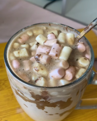 Acrescente marshmallows a gosto por cima da bebida ainda quente. Eles vão começar a derreter levemente, criando uma cobertura cremosa e doce.