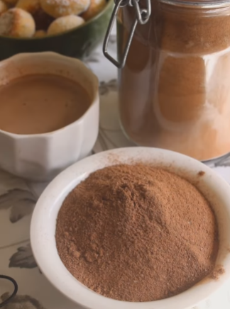- Mistura dos secos: Em uma tigela grande, coloque o leite em pó, o chocolate em pó, o café solúvel, a canela e o bicarbonato de sódio. Se quiser um pó mais fino e sem gruminhos, peneire todos os ingredientes antes de misturar.
