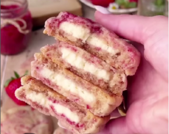 Essa receita tem inspiração nos tradicionais cookies americanos, mas com um toque caseiro que lembra aqueles doces feitos pelas vovós com muito amor. O recheio de cream cheese traz uma cremosidade irresistível, enquanto a geleia de morango adiciona um contraste ácido e adocicado que equilibra os sabores de forma perfeita.