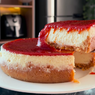 Derrame o creme sobre a base da bolacha e leve ao forno pré-aquecido a 160°C por aproximadamente 35 minutos. A ideia é que ele asse suavemente, ficando firme, mas sem ressecar. Depois, deixe esfriar em temperatura ambiente e leve à geladeira por pelo menos 4 horas.
