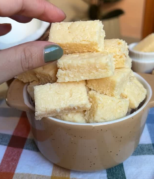 - Após esse tempo, retire da geladeira, corte em quadradinhos e sirva imediatamente.
