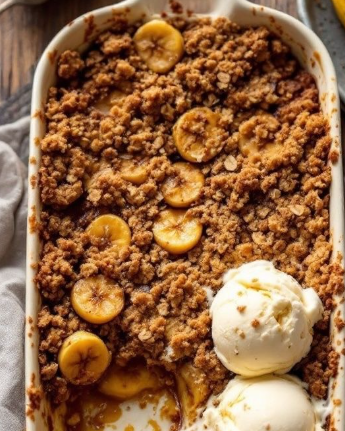 Coloque o crumble por cima da banana ainda quente.