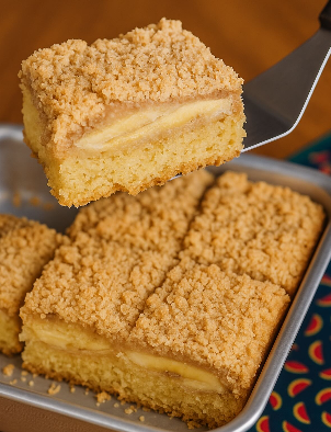 A farofinha doce por cima é uma herança típica germânica, que aqui ganhou o toque do nosso açúcar e da canela. A cuca de banana virou tradição em muitas famílias, e hoje a vovó ensina com todo o carinho como fazer a sua versão mais leve e inclusiva, sem glúten e sem lactose.
