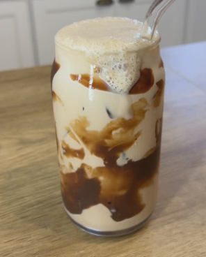 Para um toque ainda mais gelado, adicione algumas pedras de gelo ao bater – isso deixa a textura mais espessa e com cara de bebida de cafeteria.