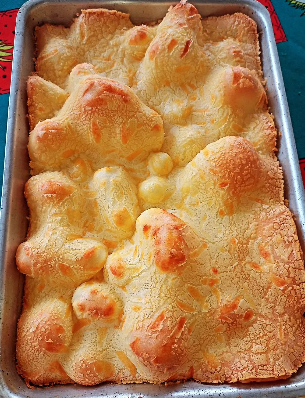 Nesta versão, usamos apenas polvilho, ovos, leite e sal, resultando em um quitute saboroso, prático e com ingredientes do dia a dia. Hoje, essa delícia continua conquistando gerações — e eu, como boa vovó, continuo ensinando os segredos desse preparo aos meus netinhos e netinhas com muito carinho.
