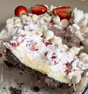 Aqui no Brasil, como tudo que é bom ganha variação, logo surgiram as versões com morangos — fruta tão querida nas nossas confeitarias e símbolo de carinho e celebração. Em travessa, ele virou um queridinho dos almoços em família, fácil de preparar e perfeito para compartilhar!