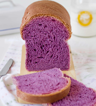 - Em uma tigela, misture o leite morno, o açúcar, o fermento, a manteiga amolecida e o purê de batata doce roxa.