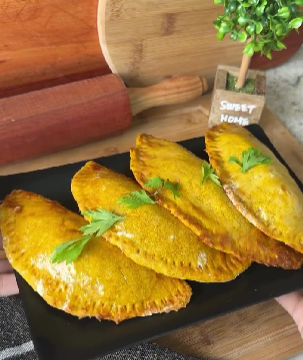 Quando as crianças vinham da escola com fome, esse pastel de forno de abóbora salvava a tarde. Enquanto a fornada assava, a casa inteira era tomada pelo aroma quente do recheio e da massa dourando.