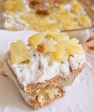 Forre o fundo de uma travessa com uma camada dos biscoitos umedecidos na calda do abacaxi. Espalhe uma parte do creme por cima e, em seguida, uma camada do abacaxi cozido. Vá intercalando as camadas até terminar os ingredientes, finalizando com o creme e um pouco de coco ralado para decorar.