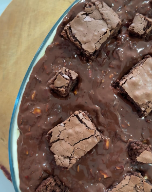 Não asse demais o brownie, senão ele fica seco e perde a umidade ideal para o pavê.