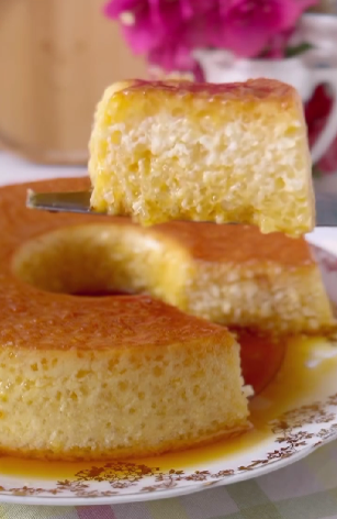 - Para desenformar, passe uma faca ao redor do pudim para soltar as bordas. Vire sobre um prato grande e sirva.