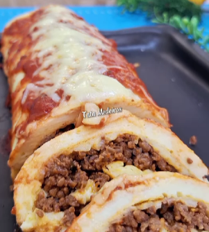 - Finalização : Coloque o rocambole já enrolado de volta na forma. Cubra com mais queijo muçarela e um pouco do molho de tomate temperado. Leve ao forno novamente por mais 15 minutos ou até o queijo derreter.