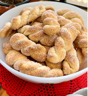 - Passe as rosquinhas no açúcar cristal para dar aquele brilho e crocância extra.