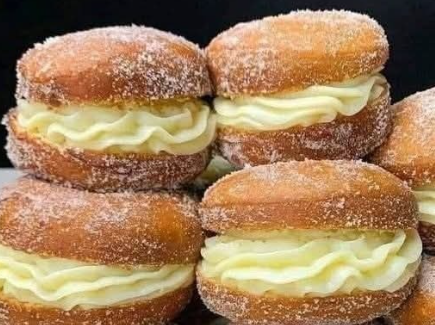 - Com uma faca, faça um corte na lateral de cada sonho e recheie generosamente com o creme. Aqui, você pode usar um saco de confeitar, se preferir, para não se lambuzar muito!
