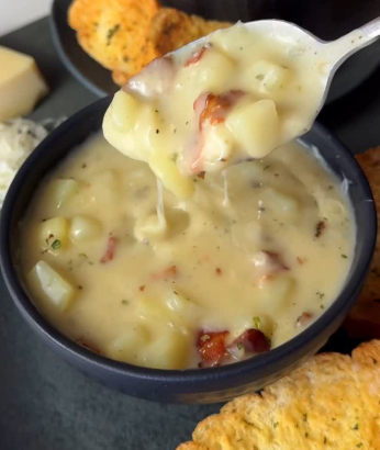 Se desejar uma textura mais cremosa para a Sopa de Batata do Outback, você pode amassar levemente algumas batatas com a colher dentro da panela.