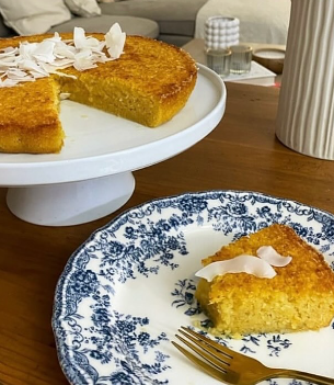 - Finalização: Retire do forno, deixe arrefecer por uns 10 minutos e desenforme com cuidado. Decore com lascas de coco por cima e sirva morna ou fria. Uma tacinha de café ou chá completa a experiência.