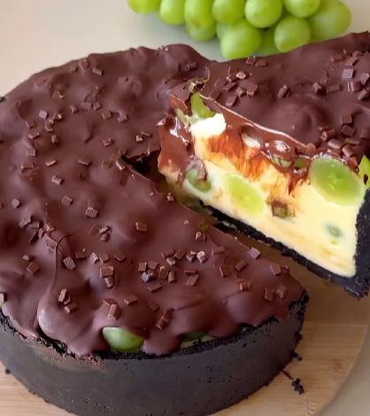 Desde a crocância da base de biscoito até a explosão do recheio cremoso com uvas frescas e a finalização com chocolate meio amargo, tudo nela é pensado para encantar o paladar com simplicidade e sofisticação. Essa é daquelas receitas que a vovó guarda com carinho no caderninho, pronta para fazer nas visitas especiais ou quando bate aquela vontade de um doce feito com amor.