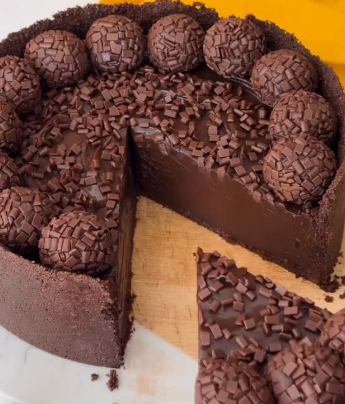 Leve a Torta de Brigadeiro à geladeira para firmar.