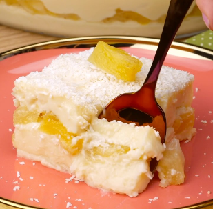 Finalize com coco ralado e os pedacinhos de abacaxi por cima.