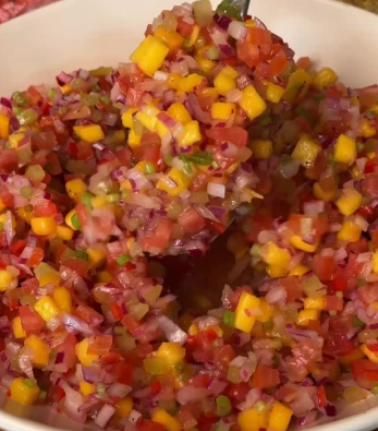 Deixe o Vinagrete de Manga descansar por cerca de 10 a 15 minutos antes de servir. Esse tempo ajuda os sabores a se misturarem melhor.